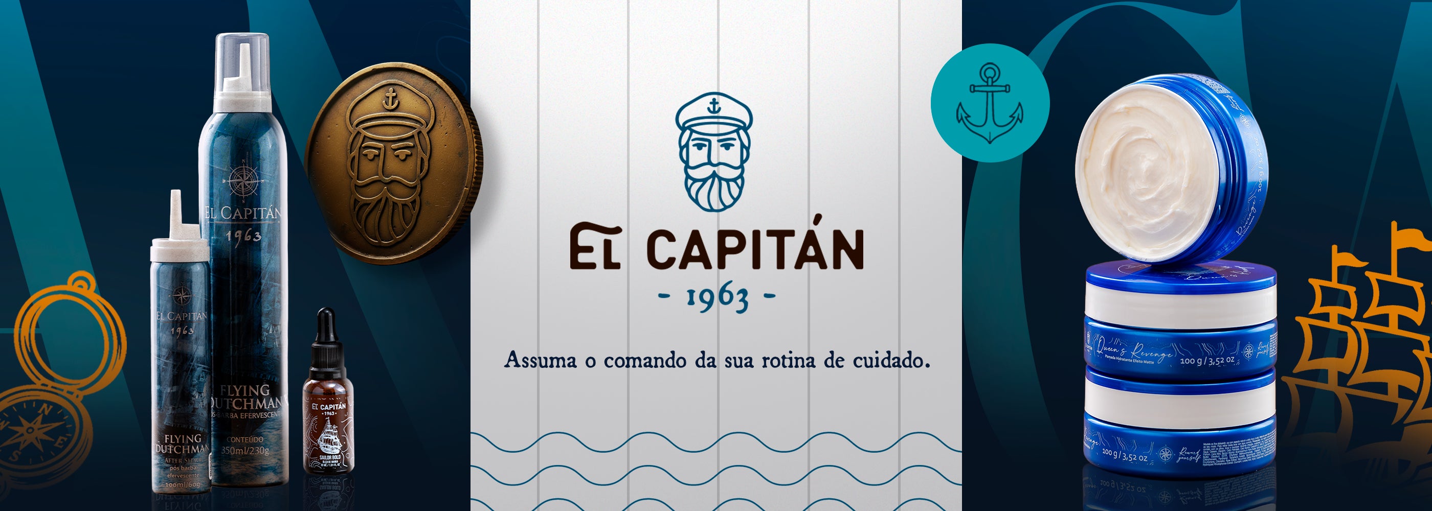 A marca de um verdadeiro capitão: óleos e balms que moldam, hidratam e trazem imponência à sua barba.