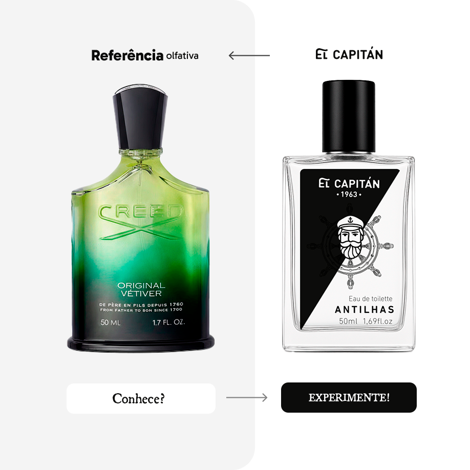 Antilhas é inspirado no lendário Original Vetiver Creed: um perfume fresco, elegante e marcante. Um convite para homens que querem deixar sua assinatura por onde passam.