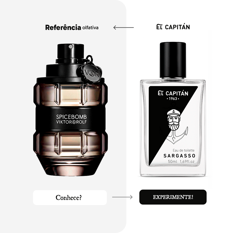 Sargasso é inspirado no icônico Spicebomb, traduzindo sua explosão de especiarias e intensidade em um perfume marcante e irresistível para homens que querem conquistar.